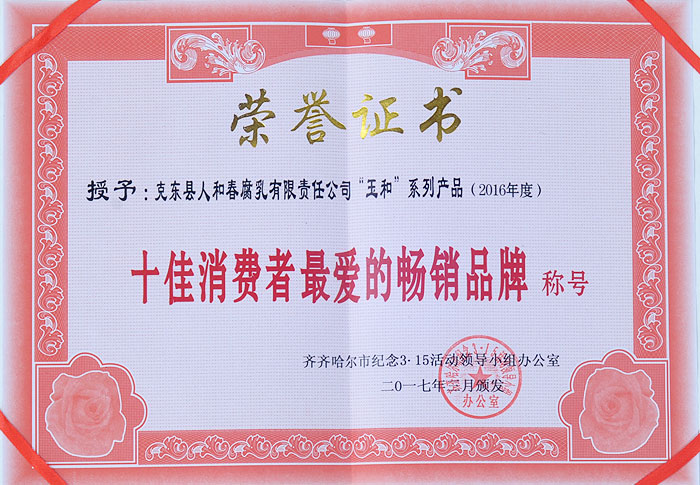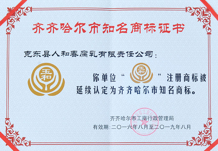 走 進 我 們 公司簡介 企業(yè)文化 資質(zhì)榮譽 發(fā)展歷程 您現(xiàn)在的位置:網(wǎng)站首頁 > 走進我們 > “玉和”商標曾獲得齊齊哈爾市知名商標 中華老字號證書 中華老字號 中華老字號 龍江老字號 曾獲得十佳消費者喜愛的暢銷品牌 共13條記錄 當前為第1頁/共3頁上一頁123下一頁
